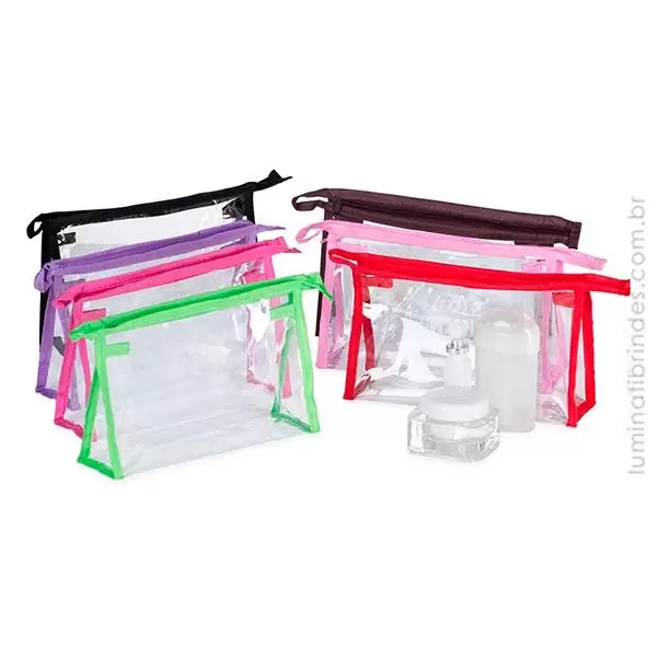 Organizar a sua bolsa ou a mala para viajar vai ficar muito mais fácil com a Necessaire Feminina! Brinde personalizado da Luminati em PVC transparente e fecho de zíper colorido em nylon. Formato retangular. Ideal para guardar maquiagens, remédios, acessórios e outros itens de uso pessoal. Surpreenda com um brinde feminino especial e prático no dia a dia!